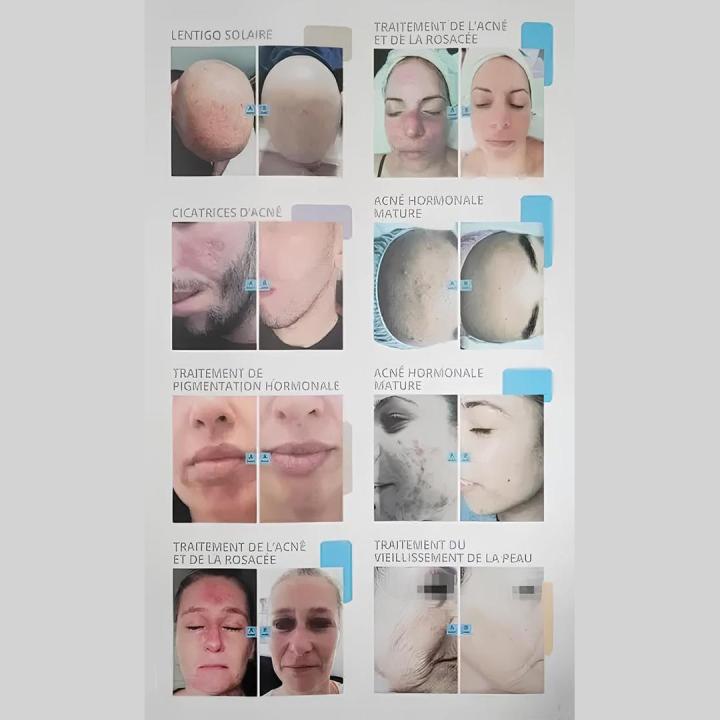 • L'ensemble de produits est conçu pour les traitements cliniques de soins de la peau, avec une variété de protocoles qui traitent efficacement et en toute sécurité tous les types de problèmes de peau.